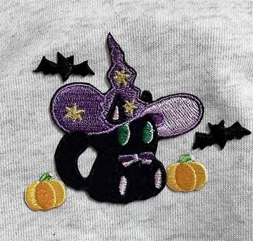The second is to make a patch and sew it on the product. It is suitable for colorful and complex designs. Lots of embroidery factories make those patches and sell them to clothing manufacturers. And then those clothing manufacturers sew them on the clothes. Many manufacturers have an MOQ of 200.